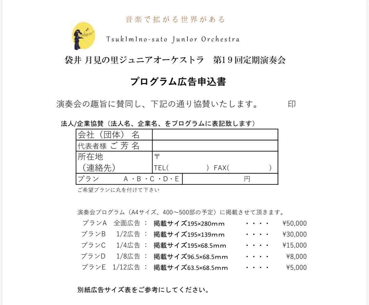 広告協賛 | 演奏会パンフレットへの広告掲載 |
